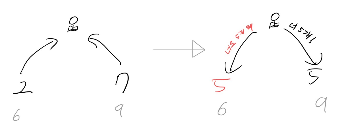 우리는 6과 9의 분배 작업 시, 나머지가 발생하면, 이를 적절하게 한쪽에 배분해야 하는 코드를 작성해야 했다.