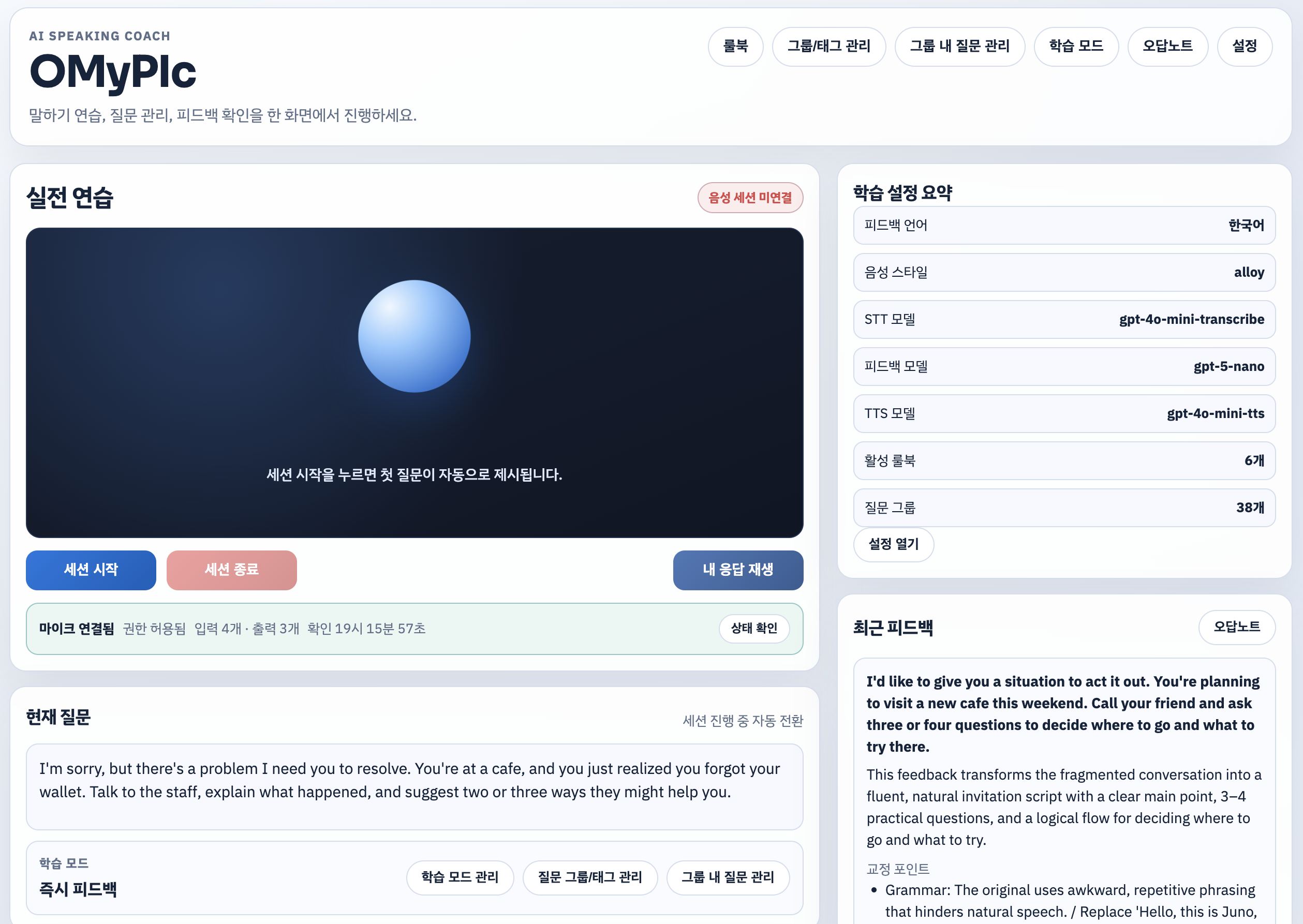 - 내가 영어를 피드백할 객관적인 기준이 있진 않아, 피드백은 건너뛰어야 할 듯.