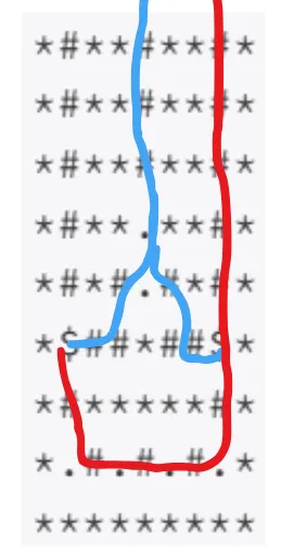 - 따라서, 현재 지점이 # 일 경우, 세 거리의 합에 2를 빼야 한다.