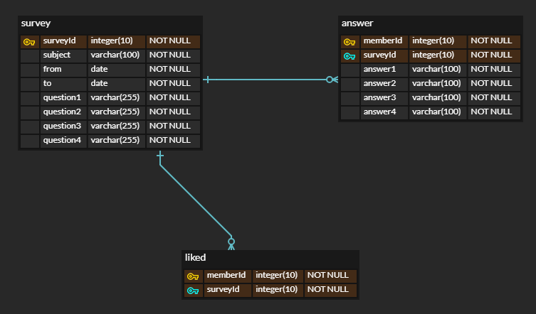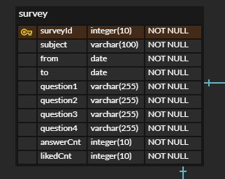 이 경우 비정규화를 이용해 답변 수/좋아요 수를 survey 내 컬럼으로 추가할 수 있을 것이다.