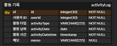 - 복합 인덱스: (userId, activityDate)를 인덱스로 사용