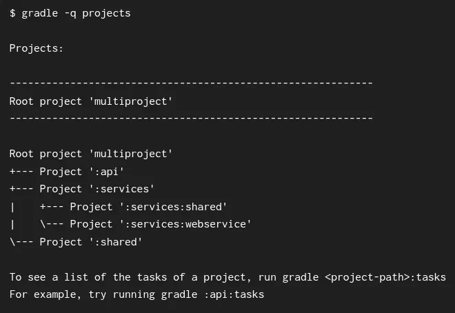 - gradle은 하위 프로젝트를 디렉터리의 이름으로 식별한다.