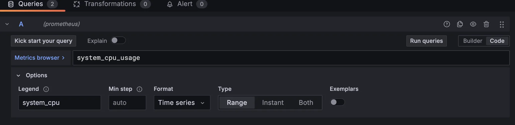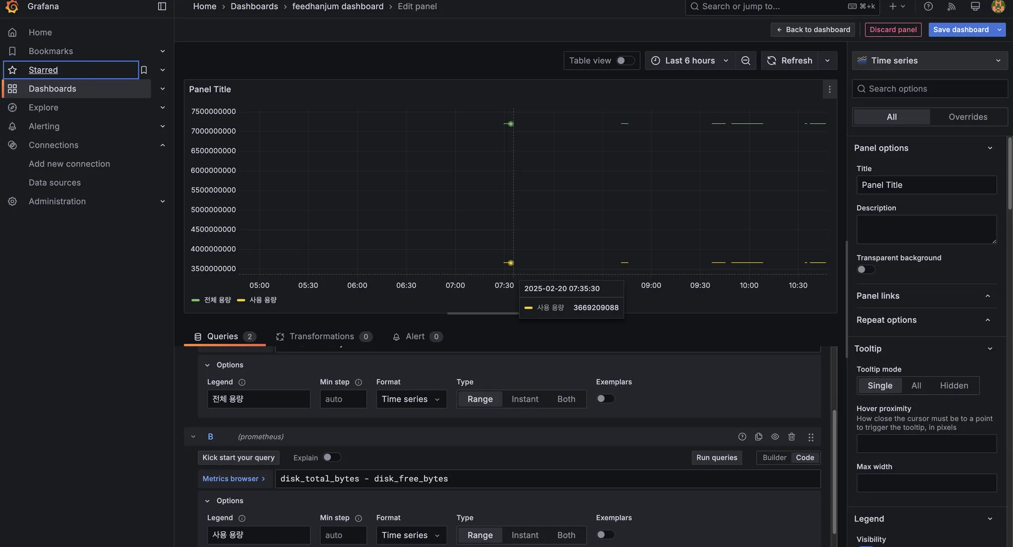 - 해당 쿼리의 패널 내 설정 지정 가능