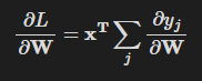 위 식에 의하여, L에 대하여 x의 i번째 원소에 대한 편미분의 경우 행렬곱을 이용해서 구해짐을 알 수 있게 된다.