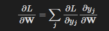 그럼 이제 L에 대하여 가중치 W에 대한 편미분을 구할 차례이다.