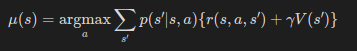 따라서 DP 갱신식의 정책을 결정적 정책 mu로 취급하여 다음과 같이 단순화할 수 있다.
