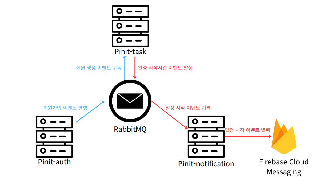 • pinit-task -> pinit-notification -> FCM (할 일 시작 시간 알림 이벤트)