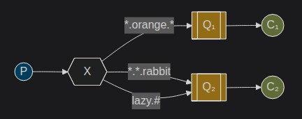 • Q2*.*.rabbitlazy.#로 바인딩되어 있어 모든 "토끼"와 모든 "게으른 동물"을 구독한다.