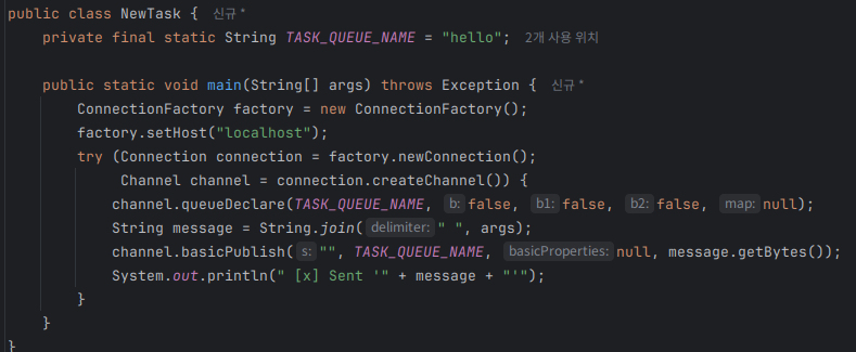 이 queueDeclare변경 사항은 생산자 코드와 소비자 코드 모두에 적용되어야 한다.