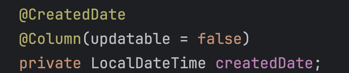 이때 스프링 Data JPA는 메소드를 만들어서, 특정 시점에 해당 필드에 값을 자동으로 대입하는 작업을 지원한다.