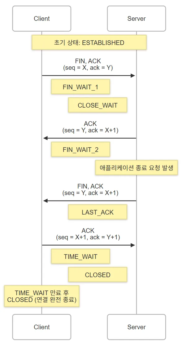 - 4번의 통신과정을 거쳐, 연결을 종료하는 과정을 의미한다.