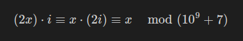 예시로 10i≡5(mod 10^9 + 7)이다.