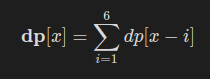 편의를 위해, dp[x]를 합이 x가 되도록 하는 주사위 굴림 순서열의 개수로 두자.