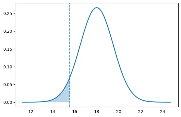 따라서 회복에 21일 이상 걸릴 확률은 2.5%, 15일 미만이 걸릴 확률은 2.5%라는 것을 유추 가능하다.