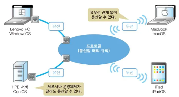 - 따라서 프로토콜을 정의함으로써, 서로 다른 장치 간의 네트워크 통신이 가능하게 한다.