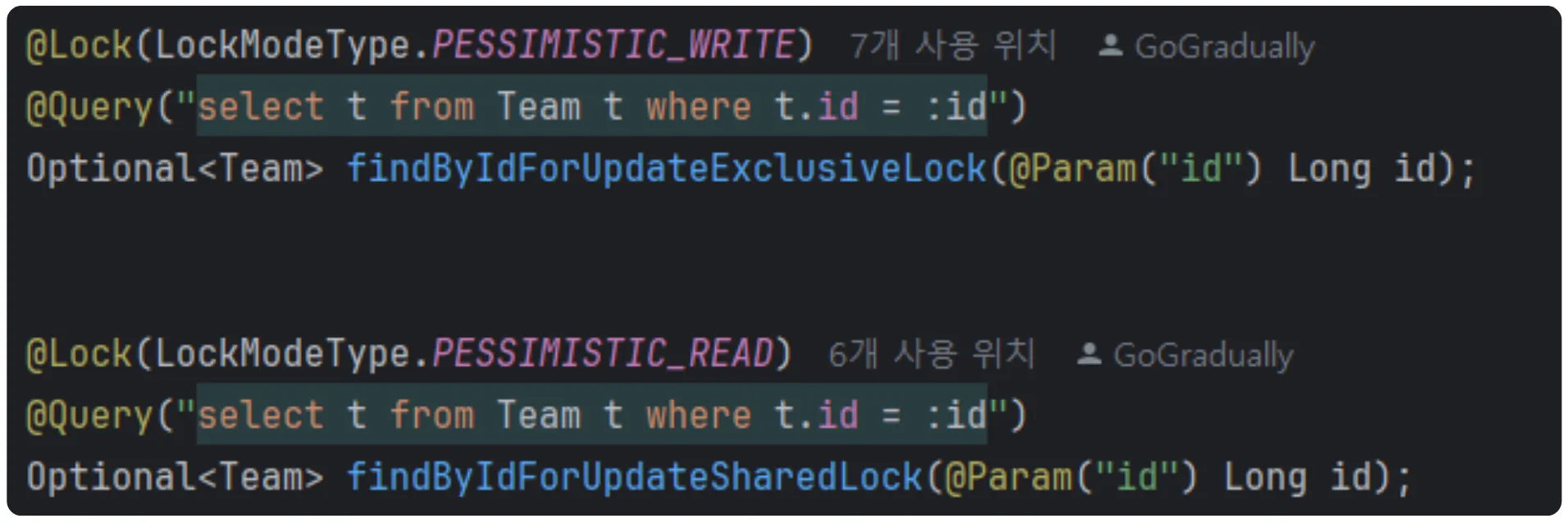 - 일정 생성 시: 먼저 팀에 Shared Lock을 걸어 일정 생성 가능 여부를 확인