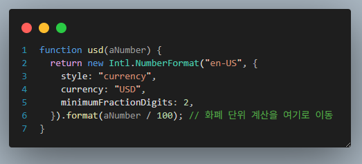 이제 추출된 함수 코드를 자세히 들여다보며, 지금보다 명확하게 표현할 수 있는 간단한 방법은 없는지 검토하자.