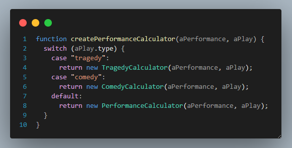 지금부터 조건부 로직을 다형성으로 바꾸기(10.4절)를 적용해보자.