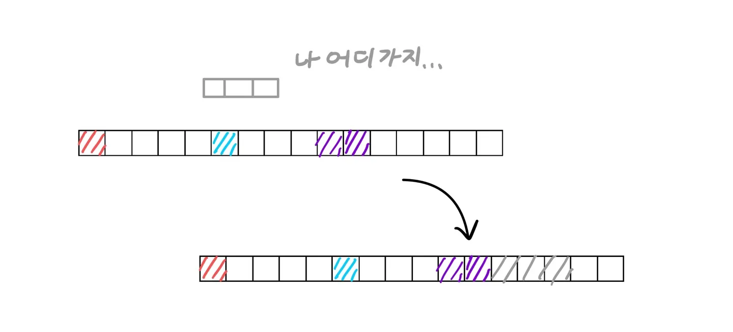 만약 여기서, 어떤 프로세스가 세 칸의 메모리에 대한 할당을 요청했을 때, OS는 해당 메모리를 위한 빈 공간을 어떻게 지정할 수 있을까?