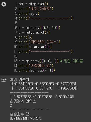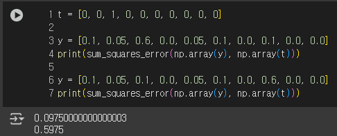 두번째 식의 계산 결과, 손실 함수 값이 0.5975를 출력했다.
