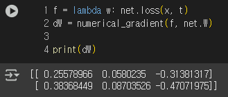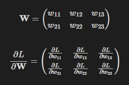 여기서 중요한 점은 행렬 W와 손실함수를 W로 편미분한 행렬의 형식이 같다는 것이다.