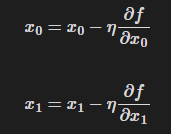 - 여기서 η(에타, eta)는 학습률(learning rate)을 의미한다. 이 값의 중요도에 대해서는 차근차근 알아보자.