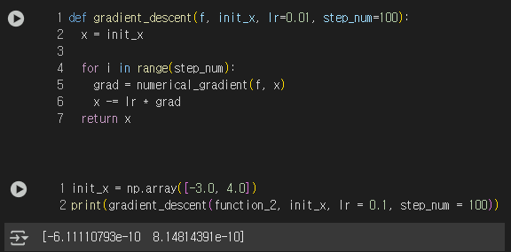 우리는 지금 이렇게 경사하강법을 구현했다.