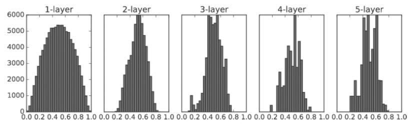 - 은닉층의 활성화값이 편향되면 표현력이 제한된다.