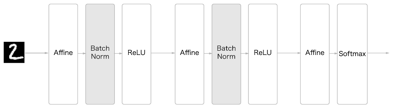 그래프에서 보듯이, 배치 정규화가 학습을 빠르게 진전시키고 있다.