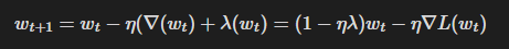 즉, 다음 가중치의 변화가 있기 전, 기존 가중치가 줄어드는 효과를 갖게 된다.