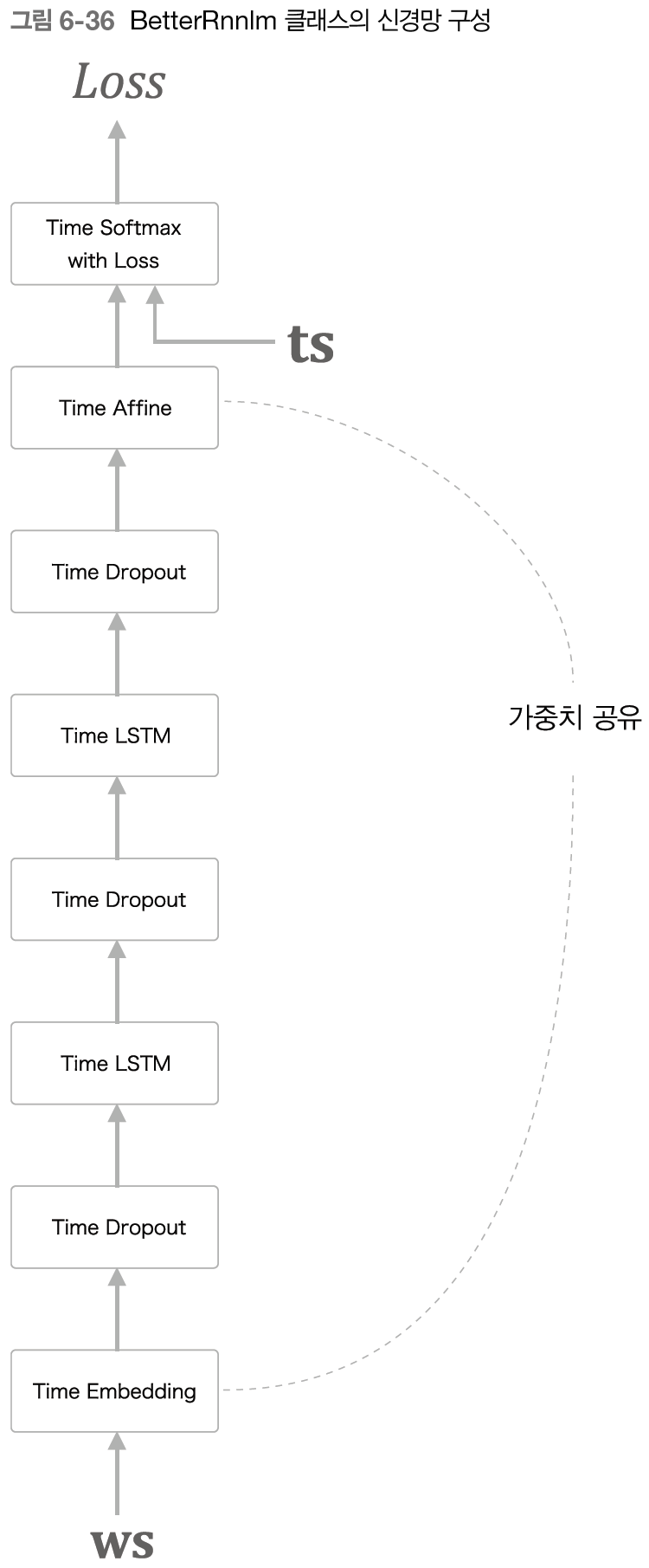 이제 이 세가지 개선점을 공유한 BetterRnnlm을 구현한다.