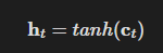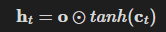 그리고 필요한 정보를 모두 간직한 이 기억을 바탕으로, 외부 계층에(그리고 다음 시각의 LSTM에) 은닉상태 h_t를 출력한다. 이때 출력하는 h_t는 아래 그림과 같이 기억 셀의 값을 tanh 함수로 변환한 값이다.