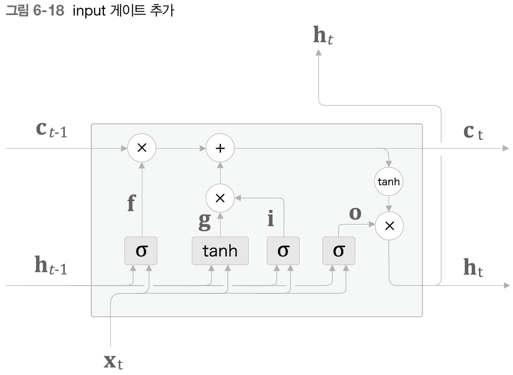 - LSTM에는 input게이트, forget 게이트, output 게이트 등 3개의 게이트가 있다.