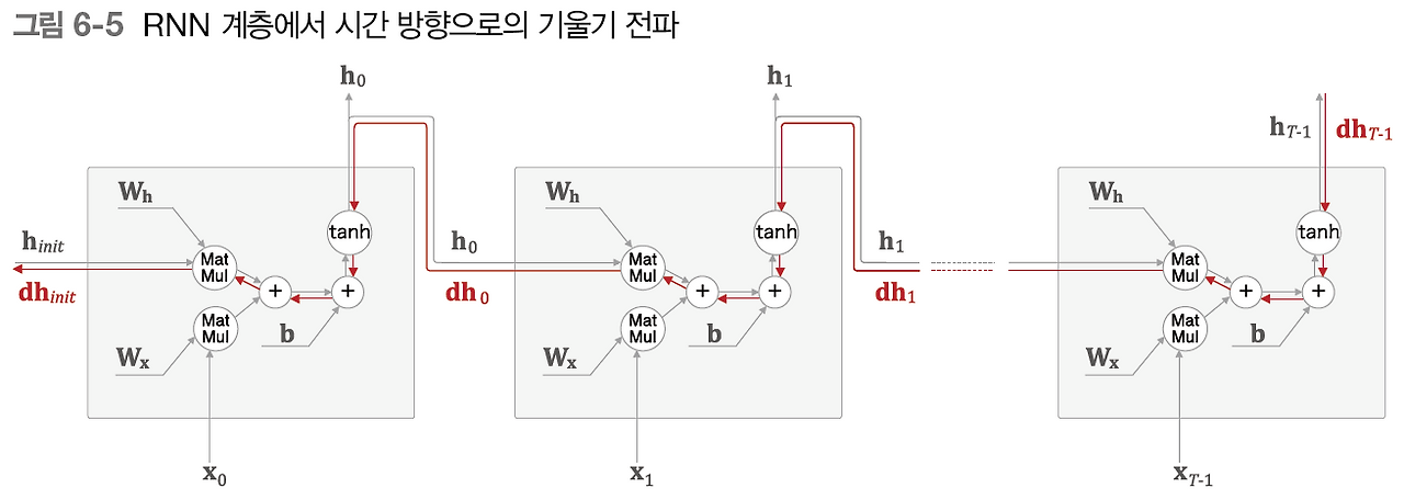 좀 더 논리적으로 RNN 계층에서 기울기 소실/폭발이 일어나는 원인을 살펴보자.