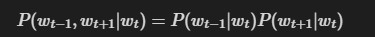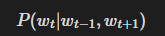 W_t-1 과 W_t+1 이 있을 때 가운데에 W_t 가 있을 확률이다.