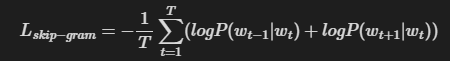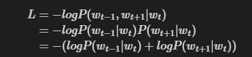 이어서 이 식을 CEE에 적용하여 skip-gram 모델의 손실 함수를 유도해보자.