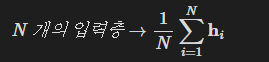 은닉층의 뉴런은 입력층의 완전연결계층에 의해 변환된 값이 되는데, 입력층이 여러개이면 전체를 평균하면 된다.