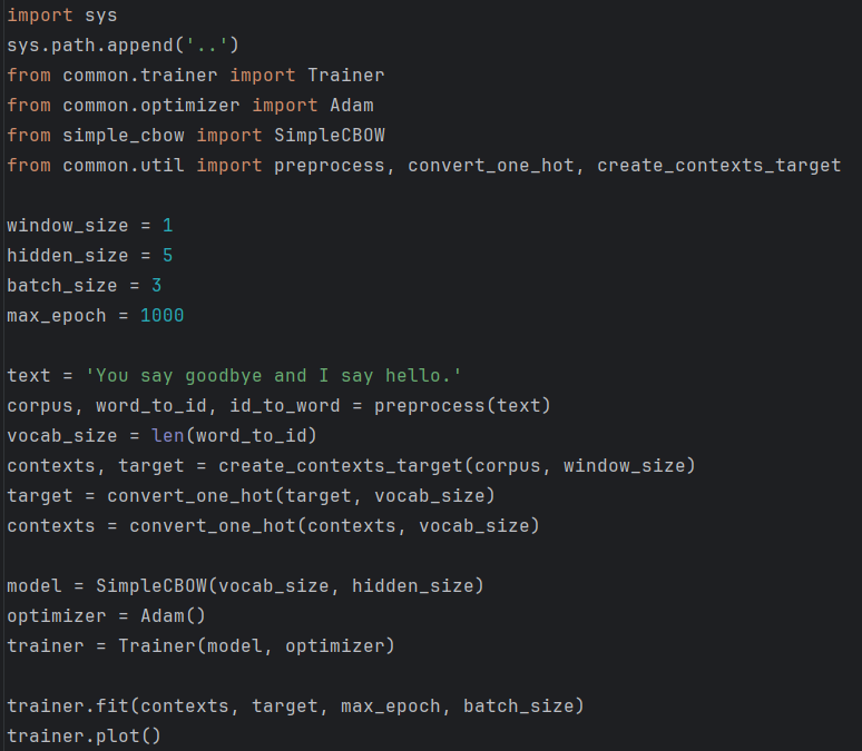 이후 다음장에서 몇가지 개선을 통해 '진짜' word2vec을 구현할 것이다.