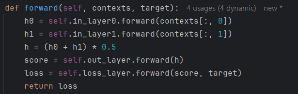 word_vecs는 각 단어 id의 분산 표현 역할을 수행한다.