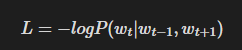 위 식을 이용하면 CBOW 모델의 손실 함수도 간결하게 표현할 수 있다.