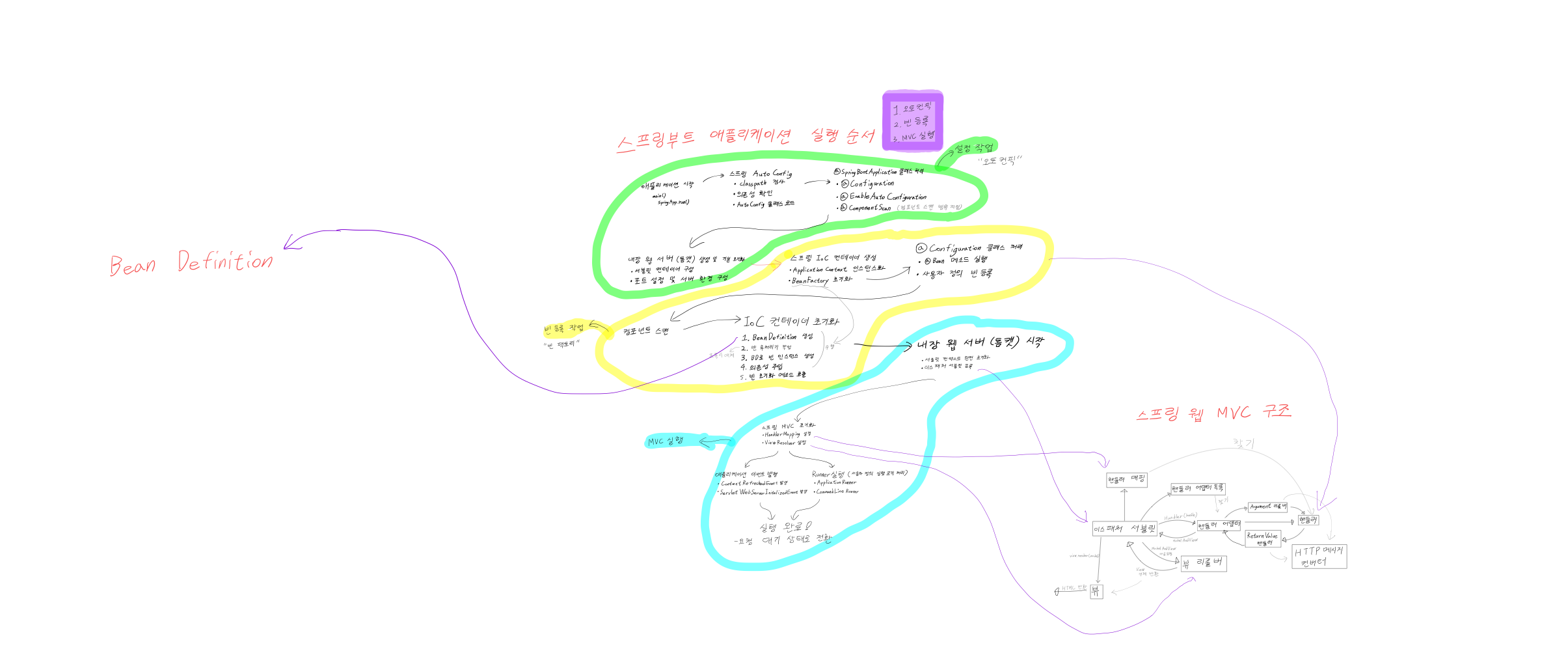 스프링 컨테이너에 의해 관리되는 Bean은 다음과 같은 생명주기를 가진다. 이 과정은 Bean이 생성되고 소멸될 때까지의 전 과정을 체계적으로 관리하기 위함이다: