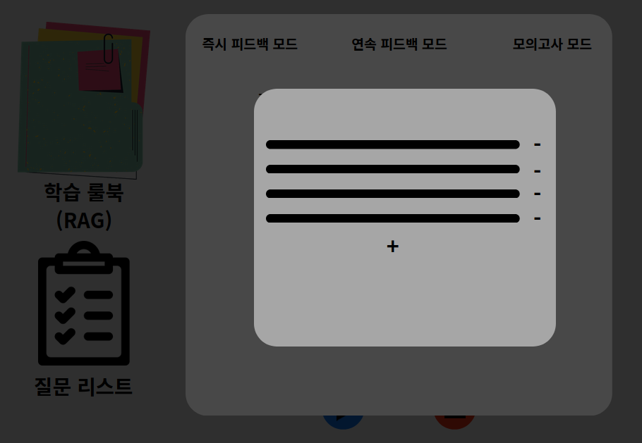 - 모의고사 모드: 사전 정의된 질문 그룹 순서대로 랜덤 출제(그룹당 사용자가 원하는 횟수대로 추출)