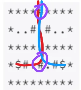 - 따라서, 현재 지점이 # 일 경우, 세 거리의 합에 2를 빼야 한다.
