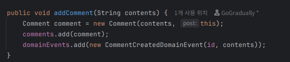 1. 애그리거트 루트 엔티티에 해당 child entity를 추가하는 메소드 넣어두기.