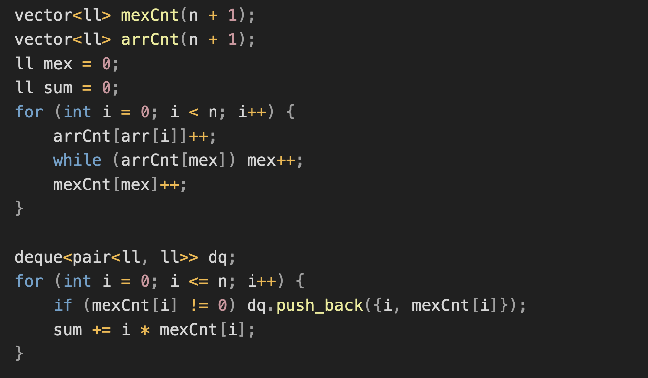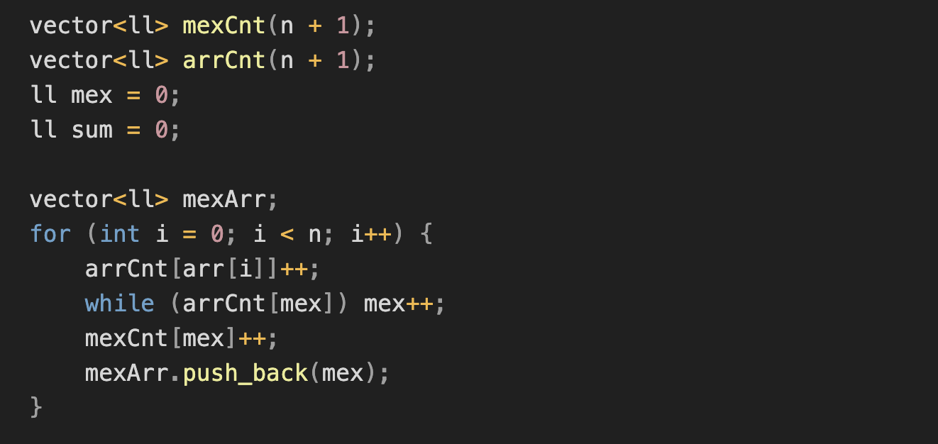 vector<ll> mexCnt(n + 1);