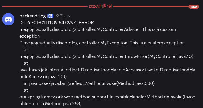 따라서, 디스코드 웹훅을 이용해 예외를 메시지로 받아보려 한다.