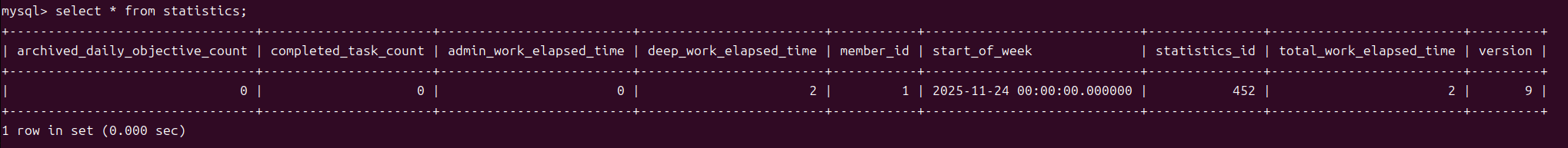 insert 쿼리를 내가 못봤을 뿐, 정상적으로 동작했고, 기록이 여전히 0분 0초여서 헷갈렸던 것일 뿐이었다.