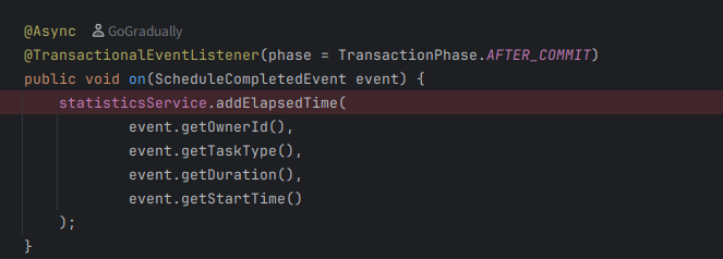 현재 @TransactionalEventListener(phase = TransactionPhase.AFTER_COMMIT) 이용 중임을 떠올린 나는, 다음과 같은 생각을 했다.