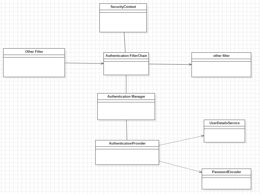 전체 구조AuthenticationFilter : AuthenticationManager = N : 1AuthenticationManager : AuthenticationProvider = 1 : NSecurityContextHolder - Spring Security에서 인증된 사용자의 세부 정보를 저장하는 곳입니다. 이는 현재 애플리