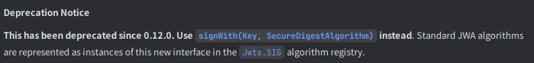그렇게 구현하려는데, signWith 메서드에 Deprecated 된 알고리즘들이 보였다.